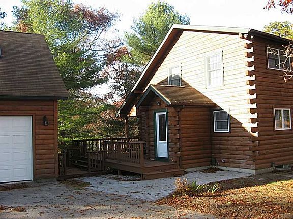 Driving up to your log cabin in the woods brings along a feeling of living in Vermont. This contemporary home's living area has soaring ceilings, skylights, a stone replace and balcony. The rst oor master bedroom suite has a cathedral ceiling and a sliding doorway onto the patio. Relax on the expansive porch with your morning coffee and listen to the birds sing. The winding country roads invite scenic bike touring and leisurely afternoon drives to the nearby beaches. Being your vacation home or year round residence, you will enjoy the open space and low maintenance that a log cabin in the woods provides.