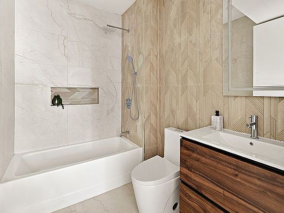 Pulaski Gardens is a newly built, seven-unit boutique condominium located on a quiet, tree-lined brownstone block. Residents enjoy smart keyless entry, a virtual doorman system, optional storage, and multi-zone heating and cooling. The building is thoughtfully designed for a boutique lifestyle, blending privacy with high-end finishes and a warm sense of community.