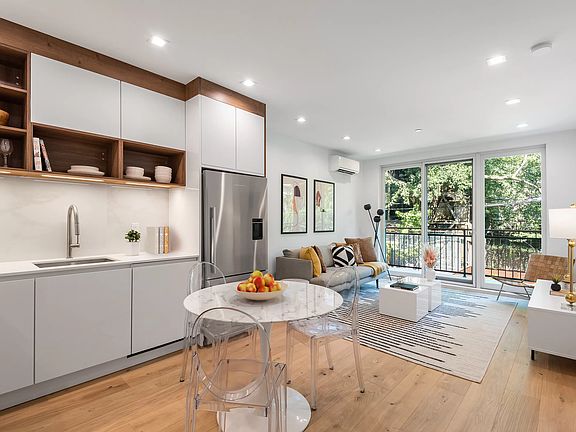 Immediate Occupancy & Closings Have Commenced! Please contact listing agent for an appointment. Apartment 4R is a one-bedroom condo with a private balcony overlooking the lush gardens of Quincy Street. Enter to discover a fantastic floor plan featuring a balcony overlooking quiet gardens, custom kitchen open to a 22-foot deep living and dining area offers the flexibility to carve out an area to work from home showcasing 7.5 inch wide oak flooring and floor-to-ceiling windows. 197 Quincy Street is a thoughtfully designed modern condominium building in prime Bedford Stuyvesant. Behind the minimalist Aluminum and IPE façade are a collection of 10 one-and-two-bedroom residences featuring smart floor plans, generous proportions and brilliant craftsmanship. The sleek kitchen boasts custom European cabinetry, Quartz countertops, and a Purity of Marble backsplash, with high-end appliances by Fisher & Paykel, Bosch, Samsung and XO including wifi-connected induction range with double oven and vented exhaust hood. The comfortable bedroom offers two closets, and all bathrooms at 197 Quincy Street have been completed with radiant heated flooring and marbled porcelain walls. Every residence has its own washer/dryer hookup and feature multi-zone heating and cooling systems, double-panel Pella windows, recessed LED lighting, floating Duravit toilets, and solid-core doors. Building amenities include an irrigated common garden, a beautifully finished common rooftop, as well as Amazon entry key accessibility and remote smart video intercom systems. 197 Quincy Street is perfectly located near the border of Clinton Hill and Bedford Stuyvesant, which was just named one of Time Out New Yorks five coolest neighborhoods in the world. Local hot spots in both neighborhoods, including Black Swan, Oaxaca Taqueria, Do Or Dive, Pilar, Greenbergs Bagels, Playground Coffee Shop, Golda, Fancy Nancy, Samurai Papa, and the Bedford Stuyvesant YMCA are all within a few blocks! Youre close to the A/C/G trains at the Bedford-Nostrand stops, making commuting a breeze. Images shown are a combination of model unit photography. This is not an offering. The complete offering terms are in an offering plan available from the Attorney General. File No. CD200240.