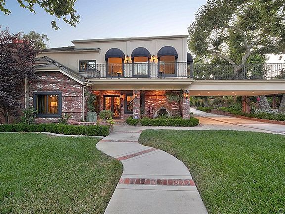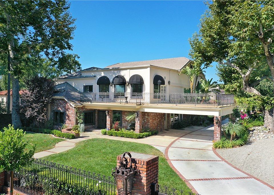 Sited on nearly an acre, this stunning home boasts a living room appointed with fireplace, formal dining area, office with fireplace main floor bedroom and bathroom, lanai, utility room and powder room. The remodeled kitchen is a chef's dream offering a built-in Viking refrigerator, stove, microwave, Dacor 6 burner cook-top w/hood, Kitchenaid dishwasher and wine refrigerator, ample cabinetry, Quartz countertops with tiled backsplash and breakfast area surrounded by windows overlooking the vast verdant gardens. The large family room with built-in entertainment center blends indoor/outdoor living with double doors leading to a covered patio w/built-in BBQ. A grand staircase leads to the master suite w/adjoining bathroom featuring a soaking tub, steam shower, dual sink vanity and walk-in closet. There are two additional bedrooms and bathrooms, a sitting area and two large balconies on the second level. The expansive grounds are perfect for entertaining whether it be lounging pool side, relaxing at the outdoor fireplace, sharing intimate dining under the Wistaria covered pergola, lawn games with friends and family or simply tending the herb and vegetable gardens. For the car enthusiast, there is covered parking for 8 vehicles (garage with lifts, carports and drive up) and an adjoining bonus room.