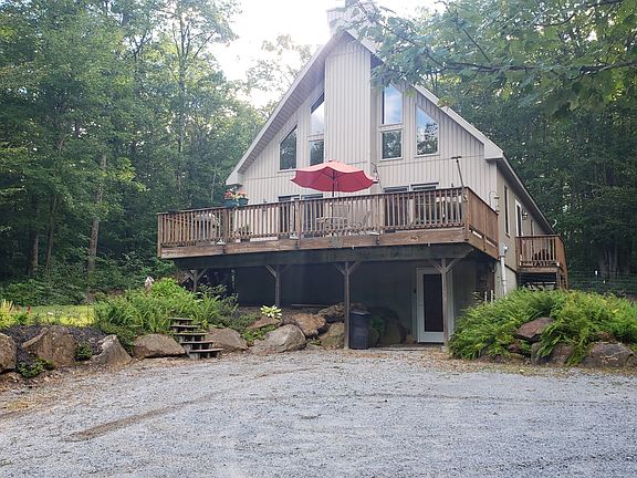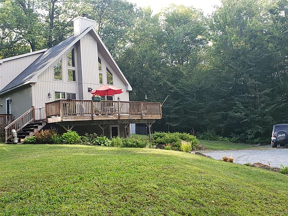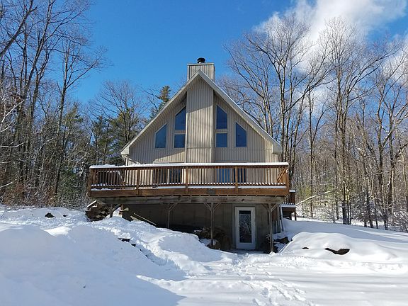 Want to feel like you are on vacation year round? You might get that fun feeling when driving up to this 4 bedroom, 2 bath chalet on 1.7 acres, located in the Hidden Lake Association in Stoddard NH. Being part of the association allows you shared water access to 7 mile Highland lake, access to the in-ground association pool, clubhouse and beautiful Hidden Lake, that the association is named for, which also has a walking trail and newly added picnic area. Step inside this home and be greeted by the open concept floor plan with vaulted ceiling and the beautiful floor to ceiling fireplace with a new pellet stove insert. You can enjoy easy living with the open kitchen with an abundance of cabinets with pull outs and an island with additional seating, along with 2 first floor bedrooms and the 3rd currently used as an office. The office, bathroom and hallway are adorned with Carlisle flooring. Climb the stairs to the Master suite retreat! This suite offers a spacious walk in closet, attached full bath, top of stairs reading nook and an oversized bedroom with windows to enjoy the wooded views. This home offers 2 oil tanks, ring door bell, outdoor generator hook up and a beautiful outdoor deck. So bring your kayaks, canoes, motor boat, snowmobiles, golf carts or just your fishing pole and enjoy this outdoor country playground!