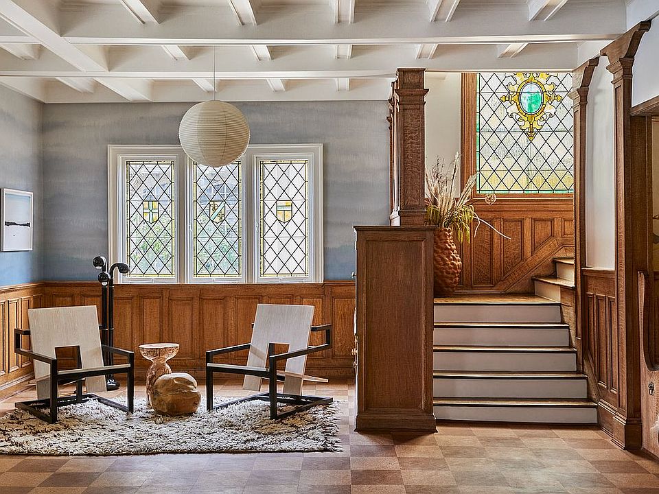 This gorgeous single-family Colonial Revival sits on a coveted tree-lined street just 2.5 blocks from the park in the heart of Prospect Park South Historic District. Designed around 1906 by prominent architects Slee & Bryson, the elegant landmark home is rich with preserved details and boasts contemporary upgrades throughout. A verdant manicured lawn welcomes you, and a columned porch leads to the foyer adorned with stained glass windows, coffered ceilings, handsome wainscoting, built-in shelves and an oak-lined staircase — all of which set the stage for the airy floor plan brightened by southern exposure and bountiful windows. The room is anchored by a wood-burning fireplace with cozy seating nook, an excellent reading spot on a cool winter’s day. The spacious, sun-soaked living room invites relaxation, while the adjacent bay-windowed family room is ideal for intimate dinners or hosting friends and loved ones. Featuring sleek stainless steel appliances, butcher block countertops, cork floors and ample cabinet space, the modern farmhouse kitchen is your backdrop for preparing family favorites and fresh culinary masterpieces. Enjoy informal meals in the adjoining breakfast room with wraparound windows. Between the kitchen and breakfast room, outdoor access provides a pleasurable opportunity for dining alfresco on temperate evenings. The private, fenced-in backyard is an optimal spot for seasonal grilling and sunbathing or creating your own sustainable garden. Upstairs, you will find an oversized master with dual closets and dressing area, as well as a refinished en suite bathroom equipped with dual sinks, walk-in shower and porcelain tub. A second bedroom with en suite half bath and third bedroom with hall access to full bath complete the level. Both rooms are appointed with deep closets. The third floor boasts three additional well-proportioned bedrooms with generous closet space and a shared bathroom.
