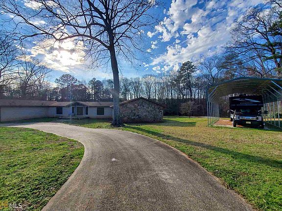 What a great opportunity to save tens of thousands on this very private, custom all brick ranch on 4.5+wooded acres with your own large fishing pond priced way below market for a quick sale. Very motivated and recently retired sellers are moving on to their already acquired beach home and must sell. Many upgrades include over $35,000 in custom windows and french doors in 2017 with recent new roof and gutters. Sale includes a 12 month home warranty from American Home Shield. Features include solid stone entry, foyer planter and huge stone fireplace in Living Room. Large formal dining room adjoins sunken living room with vaulted ceiling. Three oversized bedrooms include Master Suite with walk-in vanity bath, separate shower and soaking tub. Main bath has undergone a complete remodel with dual, pedestal sinks and tile flooring. Just off foyer towards the private end of this home is a fully paneled office with full-wall bookshelves and its own door overlooking rear of estate that could also serve as a 4th bedroom. The adjoining kitchen/den features classic wall-to-wall knotty pine paneling, a full size, walk-behind wet bar with glass shelving and refrigerator and a circular brick fireplace in center of room. All rooms open to a newly built wrap-around custom deck with 3 sets of stairs. Separate laundry room includes a half-bath and stairway entries to attached 2 car garage and an unfinished, walk-out basement with 12' ceilings stubbed for another bath and kitchen. Circular Driveway and additional parking provided with a separate 20' X 25' boat carport and an 18' X 40' covered RV parking. With many upgrades in place, save thousands and put your handy man skills to work finishing this home out with your own personal touch. A must see home in a much desired location just minutes to I-75 & I-675 and a 15 minute commute to Hartsfield Jackson Airport and downtown Atlanta! Call us for your own Personal Tour!