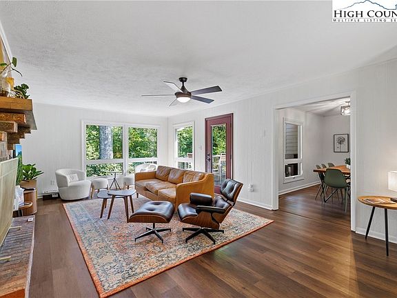 Completely renovated 4-bedroom home in Boone, offering single-level living and fully furnished! Located in a serene wooded area yet just minutes to town, this property is in a great location – only a 10 minute drive to Appstate and Samaritans Purse. With 4 bedrooms (2 with en-suites) and 3 full baths, there is plenty of space for larger families or groups. The primary bedroom has a luxurious en-suite bathroom with a double vanity and a walk-in shower. Each of the additional bedrooms is thoughtfully decorated, providing comfort and style for every guest. The beautifully furnished living room includes a wood-burning fireplace for cozy winter nights. The kitchen features quartz counters, stainless steel appliances, and ample dining space. A fantastic space for entertaining or spending quality time with loved ones.