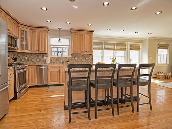 - Kit Dscrp: Dining Area, Flooring - Hardwood, Kitchen Island, Stainless Steel Appliances, Gas Stove, Crown Molding
