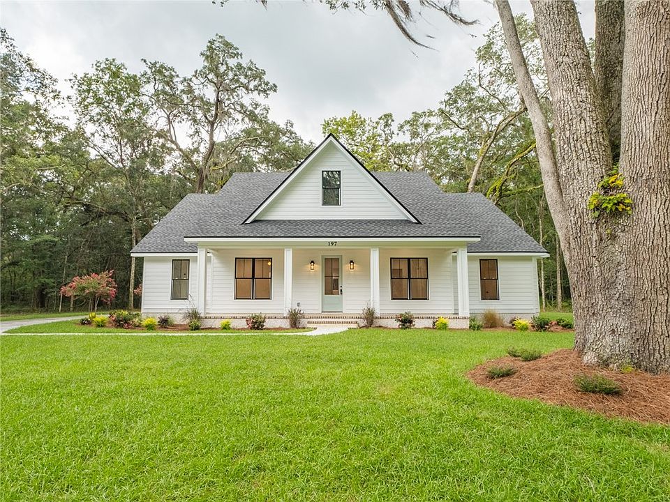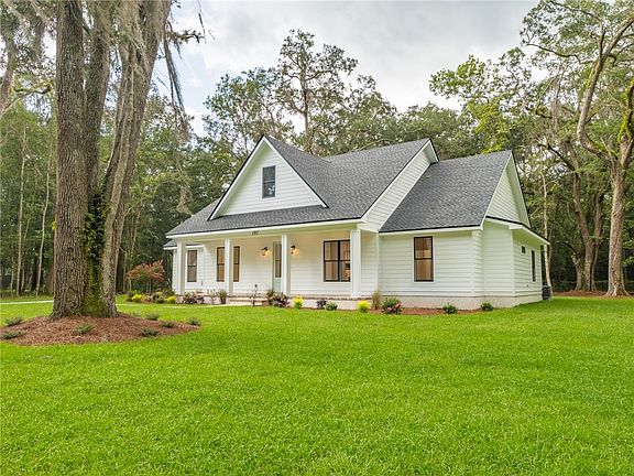Welcome to this exquisite Southern farmhouse-style home, where timeless elegance meets modern efficiency. Set on 0.61 acres and surrounded by majestic 100+-year-old oak trees, this newly constructed residence features 4 bedrooms and 2.5 bathrooms, showcasing a perfect blend of expert craftsmanship and contemporary design.