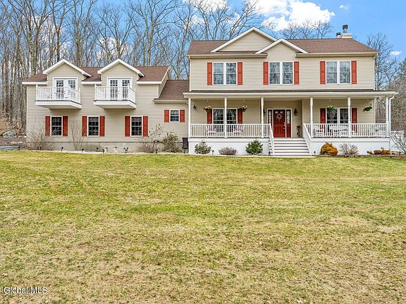 Your country retreat bordering forever wild land, just minutes to Jiminy Peak awaits you! This over 2,500 SF 3-4 bedroom colonial on 11 acres, 544' of road frontage, has 9' ceilings and a huge 860+-SF expansion area over the garage with the potential for many many uses. Choice of Averill Park or New Lebanon school systems. Wood Burning furnace supplements the oil heat. Awesome rear deck overlooks the inground pool. The owner has meticulously maintained and updated this home and list of upgrades is attached along with a 3D tour. Awesome rear deck, patio, and balcony areas overlook the fenced inground pool. Nothing to do but move in and enjoy!