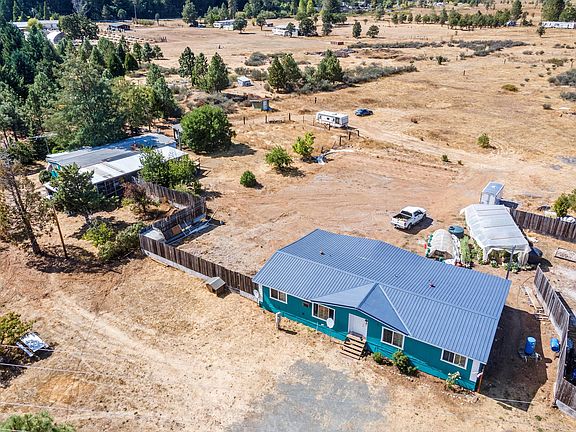Assumable loan with $39k down. Sensationally Charming Manufactured Home with Bonus Secondary Manufactured Home! Located on a 4.98-acre flat lot less than 4-miles from the center of Cave Junction, this 3BR/2BA, 1,440sqft property offers the beauty of rural living with the added advantage of nearby conveniences. Step inside the newly painted interior to discover an open layout, soft natural light, beautiful wood floors, spacious living room, and an open concept kitchen featuring an island, wood cabinets, and a dining area. Each bedroom is generously sized with a dedicated closet, while the primary bedroom also boasts an en suite. Bursting with possibilities, the fenced outdoor space has an extra manufactured home utilized for storage, which may be converted into a medical hardship dwelling. Whether you have a green thumb or are a hobbyist, this property has plenty of room for future gardens, sheds, and/or garages. Other features: ample parking, laundry room, scenic views, metal roo