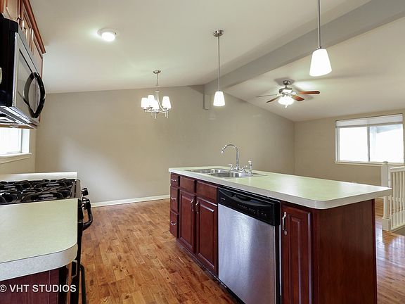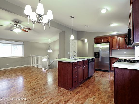 Perfectly move-in ready home! Everything done for you except unpacking! Brand new driveway, roof only 6 yrs old, huge fully fenced yard feels like country living without having to be in the country. Newer kitchen with Stainless Steel appliances, Newly refinished Hardwood floors on the main floor to enjoy with your open concept kitchen and living room that features a cathedral ceiling.New Berber carpeting in the lower level. Full bath in basement with additional bedroom and family room, perfect for entertaining. There are 5 bedrooms with 3 up and 2 on LL. Whole house water filter both inside and outside the house. Minutes to train and shopping.Almost walking distance to the Chicago Premium Outlet Mall! This house has all the "bells and whistles" and a great value, too! The sellers want this house to be perfect for the new owners, so they are finishing up some of the details in and around the home such as painting the deck and the interior of the house, & installing attic vents. WOW!