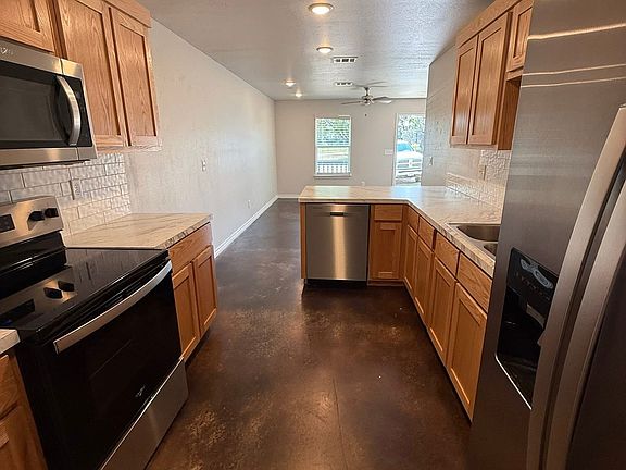 Move in ready! This 2 bedroom and 2 bathroom triplex unit is a year old and includes stainless steel appliances, stained concrete floors, laundry room, ceiling fans and lots of natural light. Enjoy the front porch sipping your morning coffee and grilling out on the covered back porch in the evenings. Beautiful grass in the front and back with a privacy fence.