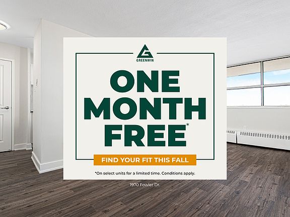 About1970 Fowler Dr. is located close to the corner of Erin Mills Pkwy. and Fowler Dr. and is minutes away from the Sheridan Centre which offers quick access to shopping, grocery stores, and dining. Our property is close to the University of Toronto, Mississauga and offers easy access to the Clark Go Station for all your transportation needs.Resident suites offer spacious 1, 2 and 3 bedroom suite designs with re-finished hardwood flooring in the living rooms and bedrooms. Kitchens offer stone-like ceramic tile and are equipped with elegant white cabinetry, self-closing drawers, and four stainless-steel appliances.Outdoor Parking: $100/monthIndoor Parking: $125/monthStorage Locker: $30/monthHeat: IncludedHydro + Water: Extra