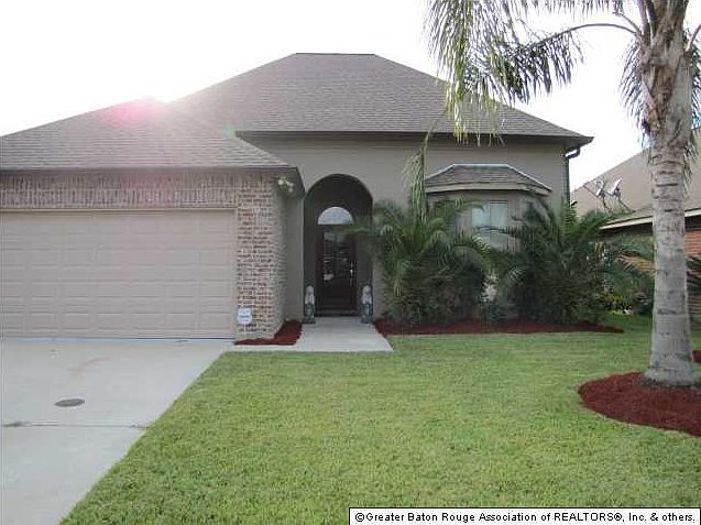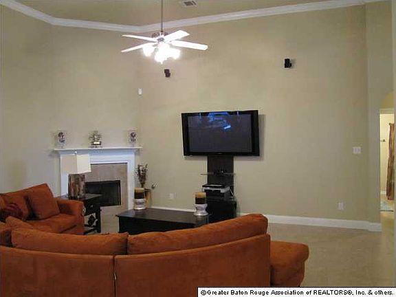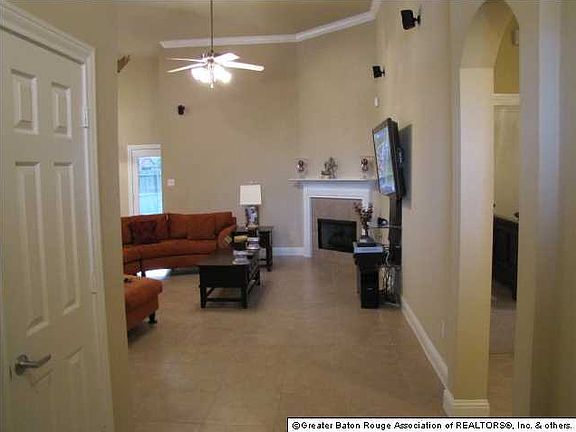 Immaculate home in the perfect location just minutes from I-12, shopping, and much more. 16 foot ceilings and an open living, kitchen, and breakfast area. Living area comes equipped with a Bose surround system and receiver that is included with the home. The spacious master suite also has a mounted HDTV included with the home, garden tub with seperate shower, dual vanities, and an oversized closet space fit for a queen. Outdoors relax on the patio in the fenced yard. This home is also professionally landscaped with multiple palm trees. Brokered And Advertised By: Hager Realty Listing Agent: Tiffany Hager