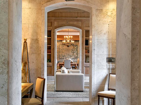 Bespoke in Birnam Wood. Sublime French-country inspired home, never before on the market. Truly custom 3BR/5BA with meticulous attention to detail. Spectacular features abound like the travertine-walled domed entry foyer, antiqued wood floors, vaulted beamed & coffered ceilings, upholstered & Venetian plastered walls, elegant French doors with custom hardware, 4 fireplaces, climate-controlled wine room, oversized garage & chef's kitchen. Gracious living is easy whether you are relaxing in the substantial library in front of the fire, entertaining in the grand living room, or feasting in the elegant dining room with its Provence feeling south-facing views. The elegant & spacious primary suite , opens to pool terrace and beautifully designed garden spaces including approx. 150 rose bushes Designed by acclaimed Architect Bob Ray Offenhauser AIA and Built by Unander Associates in 2005.