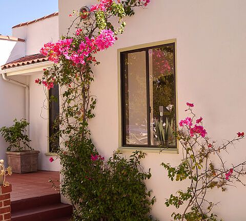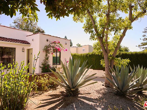 Charming Spanish Bungalow in the flats of Los Feliz. California landscape gives this magical cottage classic curb appeal. Front porch entrance into a light filled living room featuring original architectural details, hardwood floors, and decorative fireplace. Separate dining + kitchen with breakfast nook and laundry. 2 bedrooms in front of house plus 1920s pink tile bath and one en suite. Back of the house features a sunlit den with sliding glass doors to the outside + 3rd bedroom. Out back, flat grassy yard with dining patio, DG sitting area, veggie garden w/ room for more. Bonus 2 room office/studio offers endless possibilities. Located just moments from Griffith Park, Los Feliz Village and then some. A home truly in the heart of our exciting city.