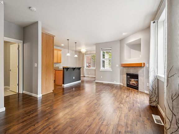 Gated townhome community + a quiet end unit. Conveniently located by the Max line, shopping, schools and entertainment. Unique layout with a large private side yard. Open floor plan. The main floor features laminate floors, a gas fireplace, and lots of windows. Spacious kitchen with island + all appliances included. Two spacious bedrooms upstairs both have private bathrooms & laminate floors. New AC in 2021 and new furnace in 2020! Move in today! New roofs are being installed in the complex and the seller will pay the assessment.
