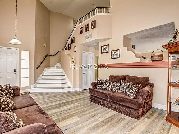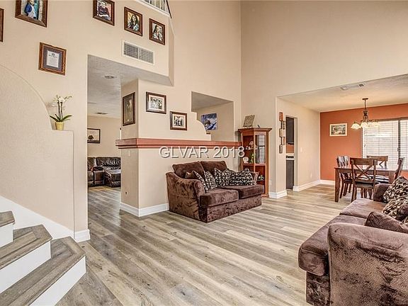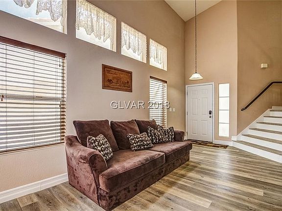 Stunning Henderson home with soaring ceilings, gorgeous SPC waterproof flooring, & custom paint tones! Flowing floor plan w/4 spacious bedrooms! Stacked stone fireplace in the F R . Gourmet kitchen features rich espresso cabinetry, ample corian counter space,and SS appliances less than a year old. Spacious master w/walk in closet, separate sitting room, and a spa like bath. Generous backyard w/low care landscape & RV parking , NO HOA ,A MUST SEE!