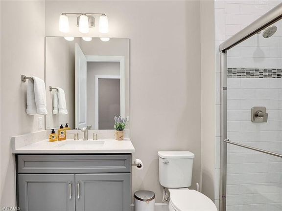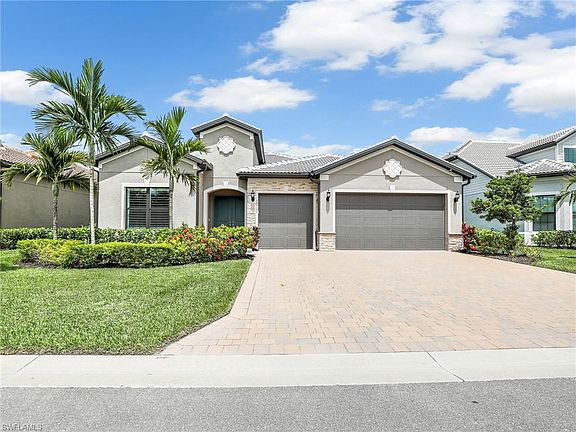 Discover the epitome of luxury living in this meticulous TURNKEY FURNISHED Pulte Stonewater home with WESTERN EXPOSURE nestled within the prestigious WildBlue community. Boasting 3 bedrooms plus a den, 3 full bathrooms, 3 car garage, and 2,852 square feet, this amazing residence offers a split floor plan with privacy for all! As you enter, you will find a spacious great room with volume ceilings seamlessly blending into an upscale kitchen with a large island, quartz countertops and KitchenAid appliances - double wall ovens (full oven & speed oven/microwave), gas cooktop, hood, side by side refrigerator, and dishwasher. Ideal for hosting, the layout flows effortlessly into an expansive living area offering coffered ceilings, complemented by an eat-in-kitchen and separate dining space. The oversized primary bedroom with tray ceiling overlooks the pool and lake view. The primary bathroom provides an oversized vanity with dual sinks, large walk-in closet, and shower w/ glass enclosure, bench, niche, and floor to ceiling tile. A large finished laundry room is equipped with cabinets, sink and plenty of room for extra storage. Relax or entertain on your private covered lanai with seating area and CUSTOM outdoor kitchen that extends to the heated pool & spa - enjoy panoramic lake views and breathtaking sunsets! Additional highlights include A WHOLE HOUSE GENERATOR, hurricane impact windows, plantation shutters, and upgraded light fixtures. Smart home technology enhances convenience and peace of mind featuring a camera doorbell, exterior camera, and Nest thermostat. Located in the luxury lakefront NATURAL GAS community WildBlue, residents experience an unparalleled array of resort-style amenities centered around a sprawling 435-acre lake including a resort-style pool, lap pool, 2 clubhouses, and poolside bar & grill. Lounge on the manmade beach or stay active with basketball, bocce, pickleball, and tennis courts - (complete with a tennis pro shop). A fully equipped fitness center with saunas and locker rooms ensures wellness is always within reach. For lake enthusiasts, community boat ramps provide easy access to water activities. Close to I-75, Publix, Miromar Outlets, and RSW International Airport, this home offers more than just luxurious living—it presents a lifestyle enriched with serenity & convenience. Don't miss your chance to make it yours and embrace the epitome of Southwest Florida living!