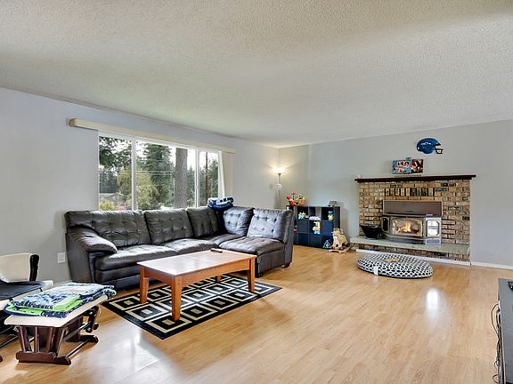 Lovely Maple Valley Split-Level. Home is 1910sqft, 3 bedroom, 2 bath w/huge fully fenced backyard. Upstairs living room has pellet stove. New floors in kitchen, stainless appliances & plenty of cupboard & counter space. New floors in bathrooms. Downstairs family room w/wood burning fireplace, built-in bar and a full bathroom. Oversized 2 car garage. New Windows. New interior paint. Newer exterior paint. Heat pump w/Air Conditioning. All appliances stay. Tahoma Schools. Close to Hwy access.