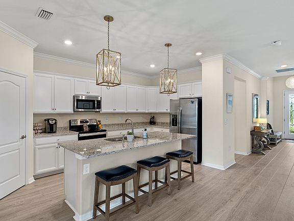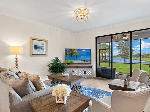 Are you looking for the perfect get away? Welcome to this beautiful fully furnished, 4 bedroom / 3 bath rental home in the highly sought after community, The Place at Corkscrew! This rental sits on a wonderful homesite with mature palm trees and a water view to enjoy your own private oasis. This house has an open concept layout with a bright and cheerful kitchen, large gathering room and designated dining space. The screened in lanai offers a great space for plenty of outdoor enjoyment during your stay. You will find four rooms with plenty of natural light and a variety of beds to fit the whole family! The owner's bathroom has a large tile shower for a spacious and peaceful atmosphere. Not only does the home come fully furnished with lovely decor, you will also have access to recreational equipment for your enjoyment in the garage! Indulge in the incredible amenities provided by this paradise-like community. Take a refreshing dip in the resort style pool featuring a thrilling 100-ft waterslide, splash pads, and a hot tub overlooking the picturesque lake. On-site, you'll find a delightful restaurant, bourbon bar, cafe, and exciting weekly food truck nights. Plus, there's a 24-hour gym, movement studio, covered playground, play center, dog park, sports courts, and so much more! Do not miss out on your opportunity to rent this great home!