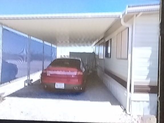The large carport is covered with room for a car and other toys.