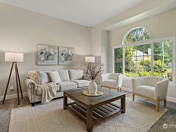 .23 ACRE CORNER TREASURE | Step into a Move-in-ready home in the sought-after Northshore School District. Fully-fenced corner lot w/ exterior vaulted office + Major updates since 2019: New LVP flooring / carpet in main areas, refreshed paint, New Furnace & A/C, New Energy-saving Windows, 6-yr fresh Roof, and renovated bathrooms. Primary en suite has Spacious walk-in closet & sparkling 3/4 bath. Finished garage w/ new doors/openers + vaulted storage area is workout / workshop / ski-slope ready. Cozy family room fireplace w/ shiplap accents. Spacious yard w/ space to play, garden, BBQ or enjoy a quiet evening under the lit gazebo. Just off the 405 / I5. Light, bright, beautiful w/ a 1yr home warranty — ready to move in.