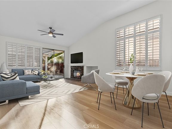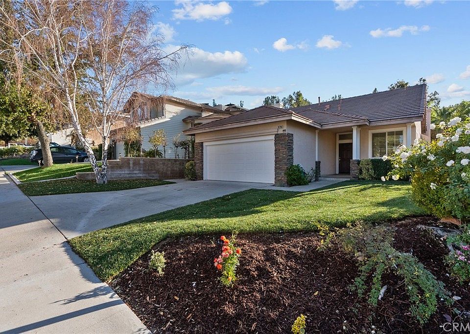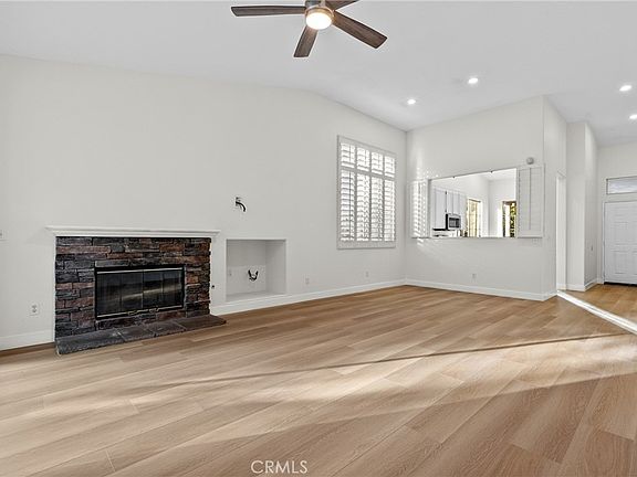 The charming curb appeal draws you in and then it only gets better! Discover this darling single story home featuring 3 bedrooms, 2 baths, and 1392 sqft of thoughtfully designed living space on a generous 7919 square foot lot. Upon entry you will find brand new luxury vinyl plank flooring throughout complimented by modern 4 inch baseboards, fresh paint and an open an inviting living concept. The kitchen boasts freshly painted white cabinets, beautiful new quartz counter tops, new stainless steel appliances, sink and faucet, new recessed lighting and garbage disposal. The family room and dining room combination offer great space, plantation shutters, new ceiling fan, stacked rock fireplace and white mantel. The primary bedroom showcases vaulted ceilings, new ceiling fan, walk in closet, sliding door that leads to your private backyard - a blank canvas ready for your personal oasis. The primary and secondary baths gleam with reglazed tub and showers, new light fixtures, plumbing fixtures, mirrors and toilets. New vanity in the hall bath and new quartz counter tops and sinks in the primary bath. The secondary rooms are sizable and have mirrored wardrobes. There is Indoor laundry, tankless water heater and freshly painted garage door. The backyard is amazing, just needs to be completed with your vision. Currently there is a large slab area with slatted patio cover, nice retaining wall and some landscaping. The question is pool or no pool, so many options. No HOA or mello roos. Situated on a cul de sac and ready to go!