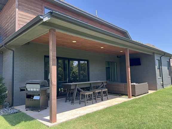Welcome to this exquisite custom-built modern home, ideally located on a peaceful corner lot in Edmond's highly sought-after Thornhill subdivision. Built in 2021 and meticulously maintained by its original owner, this 2,611 square-foot residence is a true showcase of sleek architectural design, thoughtful functionality, and modern luxury.