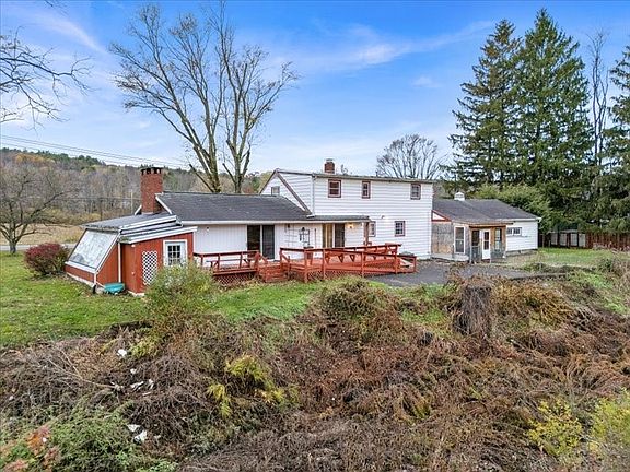 Country home with 2 bd apartment over detached garage for added income. Large deck outback with a great view. The house has 2 bedrooms on the first floor for added convenience. Large Living room with cathedral ceilings and a fireplace. The house also has a solarium for those who love to grow things or just sit in the warm sun. The garage apt has 2 bed, 1 bath and a large deck. Tenant in apt now. Nice pass-through from the kitchen to the living room, which makes entertaining a breeze. Nice large lot for that added space. A pellet stove in the living room gives you multiple heat sources so when the cooler season arrives, you can enjoy the cozy living room