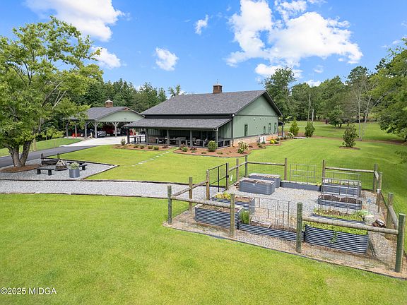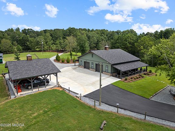 Embrace the pinnacle of country luxury with this stunning 2,852 sq ft custom barndominium, nestled on 74+ acres of breathtaking land, including 60+ wooded acres and 8+ acres of lush pasture. Located just 10 miles from Macon, 15 minutes from Milledgeville, and 90 miles from Atlanta Airport, this estate is a dream for outdoorsmen, equestrian enthusiasts, and those craving sophisticated farm living.