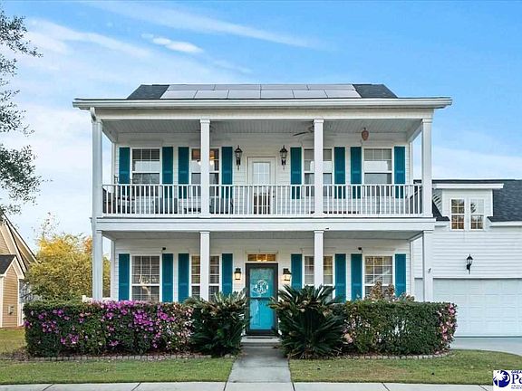 Welcome to your new home in the sought after neighborhood, Wentworth Hall. This 4 bedroom, 3 and a half bath Charleston style home is ready for its new owner. Located only a few minutes away from both shopping and groceries in the growing South Florence school district, you'll find this location very easy to navigate to anything you may need. With a new bonus room conversion to another bedroom and full bath, you will have plenty of space for family or guests to stay. The jack and jill bathroom flooring has just been updated as well as brand new roof in 2024 and new solar panels in 2025. With your primary upstairs, your entire first floor is dedicated to the spacious kitchen, dining room, office, breakfast room and living room space. There is a half bath located downstairs as well. A gorgeous staircase introduces all the bedrooms and 3 full bathrooms. The primary bedroom opens up to the spacious upstairs balcony that spans the width of the home. The exterior of this home is something to talk about. A large front porch plus the previously mentioned balcony creates a feeling of the low country style homes, right here in Florence. A spacious backyard with patio and storage building accompany the 2 car garage. The backyard is fully fenced in with a vinyl privacy fence. A large driveway as well as street parking ensure you will have plenty of room for all you and your guests vehicles. Complete with manicured landscaping, this home is truly a gem. Book your showing with your agent today and don't miss out!