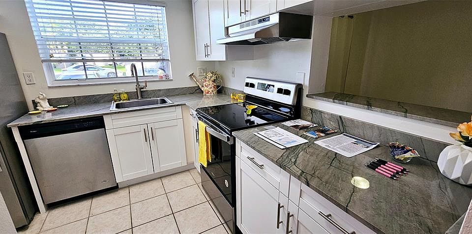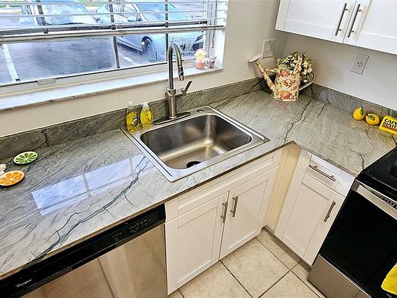 A bright kitchen complements this first floor condo in Reflections at Pembroke Pines. Cabinets and beautiful gray quartz countertops are all new. new AC (2024) , stainless stove and newer stainless appliances plus a (2024) stack washer dryer. Tile throughout, patio and parking right out front. Pasadena Elementary, Pines Middle and Flanagan High are your schools in addition to several charter schools in the area. Water and garbage service included in your rent. Reflections has many amenities. Tennis, basketball, 2 swimming pools 2 wading pools plus a hot tub & gym. All shopping, transportation and restaurants in the area. Pines City Center always has an event happening. BBQ grills available and clubhouse is available for rental. Overnight security Roof will be replaced soon
