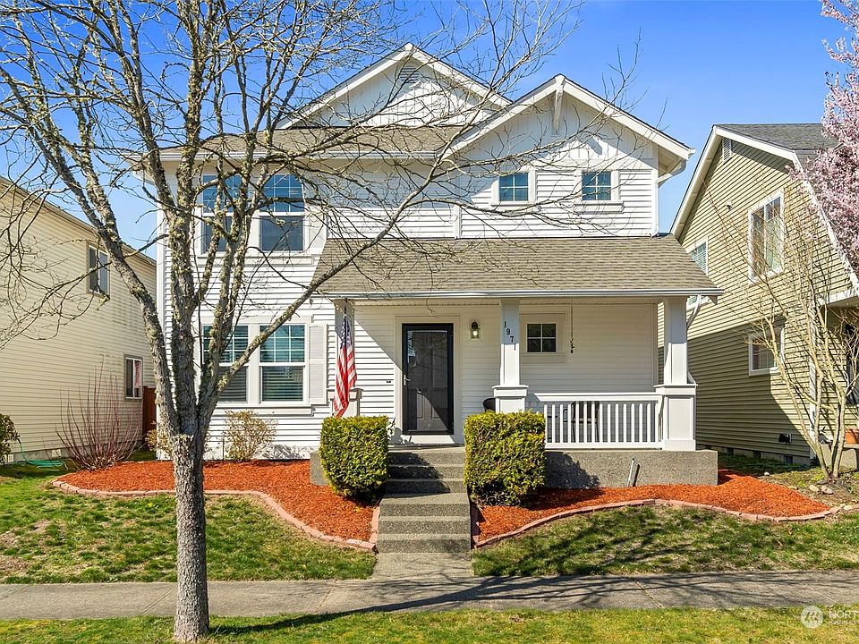 Charming Dupont home offering 3 bedrooms, 2.5 baths and 2120 square feet. The classic curb appeal and inviting covered front porch welcome you in to this recently refreshed home! The main floor features a spacious layout, luxury vinyl plank flooring, updated white millwork, neutral interior paint, and tons of natural light. Generously sized kitchen w/ample counter space, walk-in pantry, newer appliances and a garden window for all your fresh herbs! Upstairs you will find a bonus loft, two bedrooms, laundry area, and the primary bedroom w/en suite & walk-in closet. Sliding glass doors lead to the fully fenced backyard, w/paver patio & raised garden space. Convenient location, minutes to I-5, JBLM, and all that DuPont has to offer!