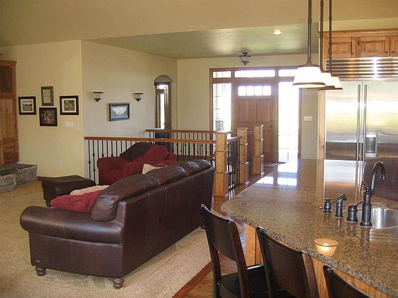 Walk in & enjoy the views from every window in the lovely custom built rancher. Formal dining, a pocket den, huge main floor laundry & a gorgeous great room centered around a massive fireplace with built-ins. Gourmet kitchen includes granite counter tops, 2 islands, wolf range, sub-zero refrigerator, warming drawer, large eating area & eating bar. Full daylight basement w/ 2 bedrooms, Jack N Jill bathroom, family room & exercise. 3 car garage & 2 car outbuilding.