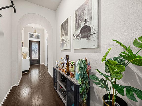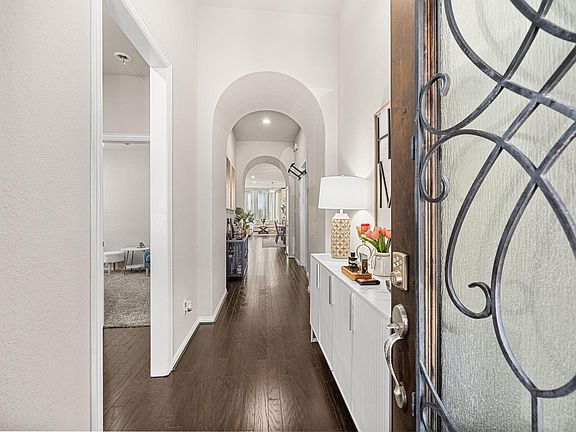 Welcome to this beautifully designed Highland Home in Grand Mission Estates! Features a charming covered front porch with a rod-iron glass door, elegant hardwood floors leading to formal dining and spacious family room with a stunning stone gas fireplace. The open-concept kitchen offers a large island, walk-in pantry, gas cooktop, and ceramic tile flooring. French doors open to a private office or media room. This home includes 4 bedrooms and 3 full baths, with a luxurious primary suite featuring bay windows, double sinks, vanity, soaking tub, and oversized shower. Enjoy a huge private backyard with no back neighbors! The landlord is relocating out of state and offers an option to lease fully furnished for an additional fee.