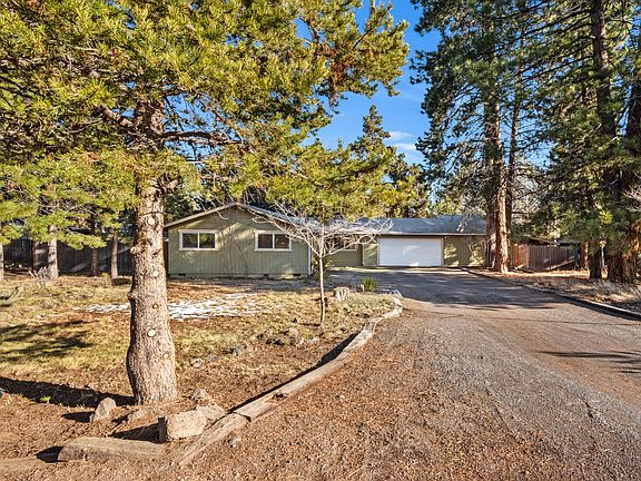 Single level charmer featuring 3 bedrooms, 2 bathrooms on a half-acre lot in the serene wooded, park like setting of Homestead on Bend's SW side. The neighborhood features larger lots with meandering roadways, creating an inviting and peaceful environment not found in newer developments. Interior has just recently been painted along with new carpeting. Updated HVAC system (+ recently serviced), updated roof and brand-new septic system (2023). Expansive rear yard and oversized garage with shop/storage area. Mature Ponderosa pine trees enhance the property's character, and it enjoys a convenient location close to schools, parks, neighborhood market and restaurants in the Brookswood Plaza along with the Deschutes River.
