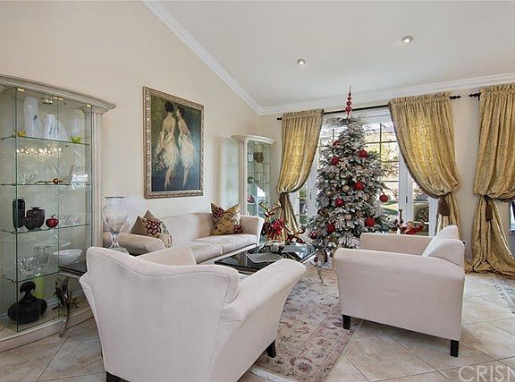 REDUCED!!! Fabulous and updated S&S built home in guard gated Northridge Gardens in popular Porter Ranch with extra large lot * Remodeled European kitchen with hand finished cabinets, slab granite, stainless steel appliances, recessed lighting, garden window, crown molding, new dual glazed slider to backyard * Large designer floor tiles set on the bias throughout bottom floor * Crystal chandeliers - formal dine, stairway, bedrooms - excluded and to be replaced by seller * Custom wrought iron stairway balusters and wooden steps * Smooth ceilings, and crown molding throughout most of the home * Hardwood floors upstairs * Beautifully remodeled bathrooms with contemporary flair * HUGE backyard features new patio, extra large grass area, and many fruit trees - citrus, 2 types of pomegranate - plus roses and shade trees * Very private * Community has tennis courts, pools and spas, volleyball court and picnic area * Low HOA * Award winning schools * Welcome to Porter Ranch - Crown Jewel on the North Valley ***