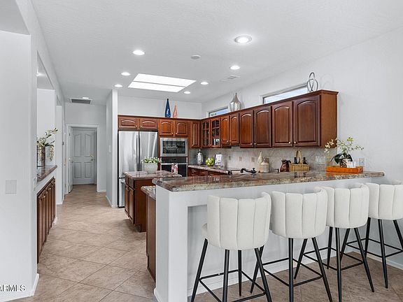 Exceptional 'MISSION' w/GOLF CART GARAGE situated on the 17th Green of GRANITE FALLS NORTH. 'WOW-FACTOR Worthy GEM FIND from Curb-Appeal to Breath-taking Picturesque Golf Course Views. Paver Driveway & Walkway to COURTYARD FRONT PATIO Entry. Picture Windows adorned with PLANTATION SHUTTERS openly display Views from both Great Room Living & Family Rooms of Patio Entertaining & Golf Course Splendor. 2 Split Spacious ENSUITES + OFFICE + Formal Dining + Inside Laundry & POWDER BATH makes this home truly special. NEW Carpet, NEW Interior paint, UPGRADED Baths w QUARTZ, Tile & NEW Seamless Glass Shower. NEW Decor Lighting. Kitchen w/Dark Volcano Granite, Cherry Cabs & NEW Stainless GE Appliances & Cooktop + Bosch Dishwasher. NEWER ROOF, AC, LIFE SOURCE WATER FILTRATION. ONE SWEET HOME!