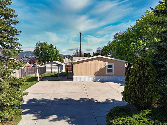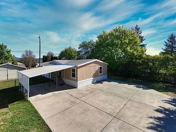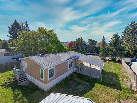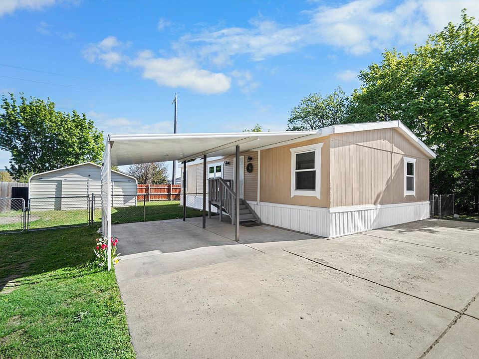 Move-In Ready, Cozy and Affordable! Double Wide 3 bedroom, 2 bath manufactured home nestled on it's own oversized lot. New exterior/interior paint, several new light fixtures, updated vinyl windows/slider, newer stove, frig, dishwasher, updated laminate flooring, newer toilets, new main bath vanity and new roof in 2021. Blinds and Window AC included. Newer hot water tank strapped. Attached carport makes it handy for loading and unloading out of the weather. 20x20 SHOP is great for storage or projects-power installed. Back yard fenced and ready for your pets. Concrete driveway supports ample off street and small RV parking. No HOA-Home moved 1 time, skirted, tie downs, and vapor barrier installed. Garden Shed negotiable. Within minutes to I90 access, shopping, schools, parks, and the Spokane River. What a great location! Come take a look before it's gone!