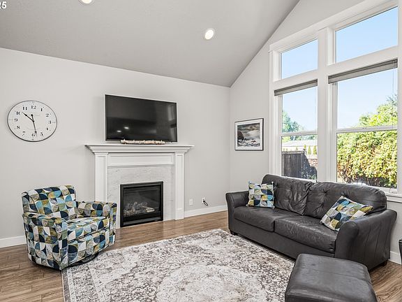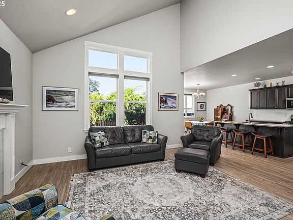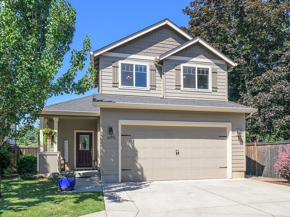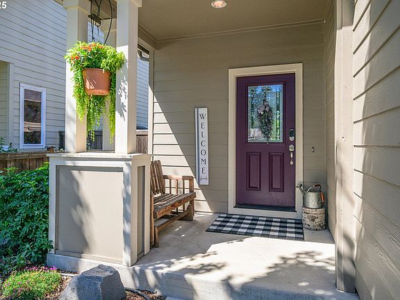 Escape the hustle and bustle in this stunning home nestled on a private cul-de-sac in northwest Eugene! With modern, high-quality finishes, it offers a perfect blend of elegance and convenience. Step inside to an inviting open-concept living area with lofty ceilings and expansive windows that flood the space with natural light. The floorplan flows effortlessly into a spacious kitchen, featuring soft-close Lanz cabinets and a massive granite island—the ideal spot for everything from a quick morning coffee to a holiday feast. You'll love the ultra-quiet Bosch dishwasher and the 5-burner gas range for gourmet cooking.Upstairs, discover three comfortable bedrooms plus a charming landing, perfect for a desk, reading nook, or creative space. The entire second level was updated with plush new Stainmaster carpet just last November. The primary bedroom is its own private retreat, featuring crown molding, an ensuite with a walk-in shower, and a spacious walk-in closet.The thoughtfully designed, low-maintenance yard means less time on yard work and more time relaxing. A generous patio, sheltered by climbing vines, and a small but prolific apple tree provide a peaceful escape, while a single raised bed and a blueberry bush allow for an easy and nutritious urban garden. With parks, shops, and the airport all just a short drive away, this home provides a rare combination of privacy and affordable luxury without sacrificing convenience. Come see it for yourself - schedule a tour with your agent today!