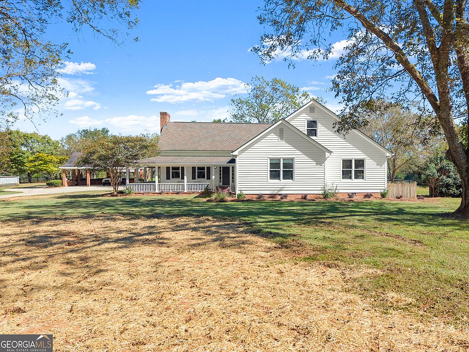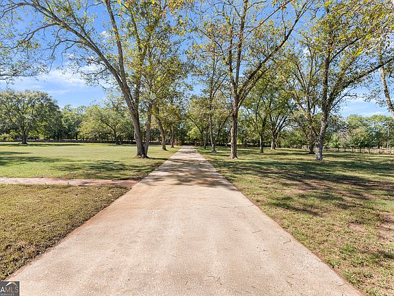 Secluded 75-acre, former Arabian horse farm with a 3,510 square foot, two story, classically designed house built by a member of one of the most prominent families in Upson County. As the former owners of what is now the Interfor Lumber facility, there was unlimited access to premium cuts of local timber and it shows in the craftmanship and materials that are unheard of in any new home. Literally no expense was spared in this house's construction. Over 65 acres of established pasture are on both sides and behind the home with a large front yard with mature pecans well off a low traffic road, no nearby developments, and a forest along the back part of the property assure your privacy. This land also features a stunning 1.75-acre pond, an impressive horse barn and several other out-buildings adding both beauty and function to the property. Some recent renovations were completed such as an ADT alarm/camera system, smart home features including Nest thermostats throughout, a safe closet, new garage doors with remote Wi-Fi control, updated electrical, exterior paint, and recently serviced three zone HVAC. On entry you will love the versatile mudroom that also serves as a bright sunroom, featuring timeless brick paver flooring and a convenient full bathroom. Wide covered porches wrap around much of the home, proving the perfect spots to relax and take in the views. An attached two car garage adds everyday convenience, while a detached three-bay carport offers ample space for additional vehicles. The home features two working wood burning solid brick fireplaces and a supplemental wood burning Hardy heater. The spacious kitchen features solid wood cabinetry crafted with quality you cannot find anymore, solid surface countertops with abundant workspace and wraparound recessed lighting. A stainless steel built in Sub-Zero refrigerator and a charming butler's pantry with beautiful shelving make this kitchen ideal for both everyday living and entertaining. The cozy den exudes warmth and character, featuring rich wood tones, built in bookshelves and timeless pine hardwood floors, with a beautiful brick wood burning fireplace creating the perfect gathering spot. The home also features a grand and light filled formal living room with an additional fireplace and an elegant formal dining room ideal for hosting friends and family during the holidays. Wide hallways flow throughout the home, enhancing accessibility and comfort. Each bedroom reflects the home's enduring quality, featuring original wood shutters and large windows (new in 2014) that invite in the natural light. Thoughtful trim work and elegant crown molding accent the rooms, adding to their timeless appeal. Spacious walk-in closets provide excellent storage throughout, and the second and third bedrooms are connected by a classic Jack-and-Jill bath for added functionality. Upstairs you will find a massive bonus room that offers endless possibilities, ideal for a playroom, home office, or media space. A convenient walk-through door leads to the attic, revealing more of the home's exceptional craftsmanship with solid 1x6 wood roof backing. This area also provides easy access to systems and ample space for holiday decor and additional storage. Outside, brick paths and soft landscape lighting create a garden-like stroll through the backyard, leading you to an elegant horse barn that is every horse enthusiasts dream! Featuring concrete floors, a new metal roof installed in 2011, four large stalls, a tack room, feed room, and a loft upstairs. The barn is not only fully functional; it boasts the charming silhouette of a traditional barn that we all love! Close by you will find a large three-sided pole barn, perfect for additional shelter or equipment storage. Expansive pastureland provides ample space for nearly any interest! Ready to move in and enjoy, this well-built farmhouse also offers plenty of potential for those who'd love to add their own flair and make it their own!