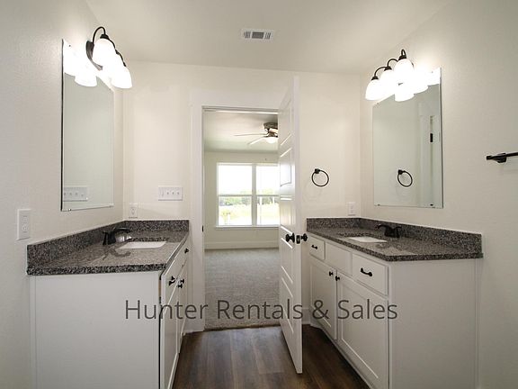 Newly constructed, this stylish three-bedroom townhome is truly luxurious and loaded with amenities! The modern architectural style of the exterior is impressive and well complimented with attractive landscaping. With over 1,500 square feet of living space, the posh interior includes luxury plank vinyl flooring in the living and wet areas and upgraded carpet in the bedrooms. The main living area has abundant natural lighting, ceiling fan, additional LED flush mount lights, and French doors with access to the patio. The kitchen is a chef's delight with spacious granite counter tops, all stainless appliances, breakfast bar, and ample cabinet space. The capacious primary bedroom is located on the first floor and leads to the spa-like primary bathroom, which features a lengthy granite countertop, double sink vanity, twin closets, and an inviting walk-in shower. The home's second and third bedrooms are located on the second floor along with a sizable full bathroom with double sink vanity, granite counter tops. Additional amenities of this home include a separate laundry room, powder bathroom on first floor, garage with automatic opener and storage closets, and window treatments throughout. Foam insulation, a high efficiency central air system, and low-emissivity (low-E) windows make this an extremely energy efficient and comfortable home. This home is located twelve (12) minutes from Scott & White Hospital, Eight (8) minutes from the University of Mary Hardin-Baylor (UMHB), and thirty-nine (39) minutes north of the city of Round Rock. Lawn care is provided along with basic Spectrum cable service. This property is in Royal Heights Homeowners Association, Inc., which ensures well-maintained common areas and deters nuisance activity. Application Information: * Offered by Hunter Rentals and Sales *Visit our website for an online application and to view complete listing information. Questions, please call our office. * We do full background checks & are seeking qualified, long-term residents. To view our rental criteria, visit our website under rental policies. * Application Fee: $75.00 each. * Security Deposit is due at lease signing. * Once approved, a one-time non-refundable administration fee of $100 will apply. The administration fee is due by the lease start date.