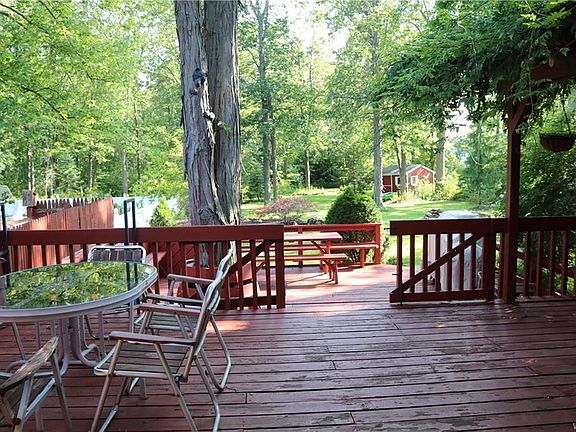 This gorgeous 2 story home on 1 acre lot is truly turn-key! Double door entry welcomes you through to gleaming hardwood flrs, awesome beamed cathedral ceilings, & ceiling fans throughout. 2 flr includes living rm w/wood burning fireplace & handsome brick mantel. Updated kitchen w/ceramic tile floor, Corian counters, & skylight. Dining rm w/sliders to multi level deck over looking partially fenced park-like yard. 3 beds w/generous closets & full bath. 1st flr includes family rm w/gas fireplace & brick mantel, dry bar, office (poss 4th bed) brand new full bath, & spacious laundry/utility rm. Attached 2+ car gar w/drain. Updates include exterior waterproofing & drain tile '15, roof '10, HWT '12, driveway w/drainage, & more!