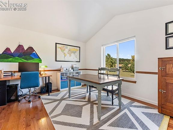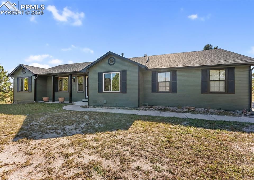 SPECTACULAR Pikes Peak and Front Range Views! This beautiful ranch-style home sits on 5 peaceful acres of meadows and trees, an abundance of wildlife, offering the tranquility and space you’ve been looking for. Enjoy relaxing or entertaining on the expansive 536 sq. ft. deck while soaking in the incredible mountain views. Inside, the home is filled with natural light, creating an open and inviting atmosphere. The hardwood entry flows into the main-level living and dining rooms, and the open concept design makes it perfect for gatherings. The spacious kitchen features tile floors, oak cabinets, and brand new stainless steel appliances, including a refrigerator & dishwasher. Main level, you’ll find two generous bedrooms with a full bath, plus a large primary suite with a remodeled primary bath and its own access to the deck. Every window in the home captures a view worth admiring. The walkout basement is fully finished, offering a cozy family room, 2 bedrooms, a 3/4 bath, and a pellet stove (new motor)— Recent upgrades include a new roof (September 2024), updated electrical panel, 2-stage furnace, serviced hot water heater with new rod, new well pump, solar panels, and a radon mitigation system. The home also features excellent storage and an attached 2.5-car garage. Outside, enjoy the deer-proof fenced garden area and a concrete hot tub pad (100 sq. ft.), enjoy those nice summer evenings sitting in the hot tub (stays with the home). With no HOA, you’re free to enjoy the property your way — whether that means keeping animals, gardening, or simply embracing the peace and beauty of country living. Come experience the views, space, and serenity this stunning property offers!