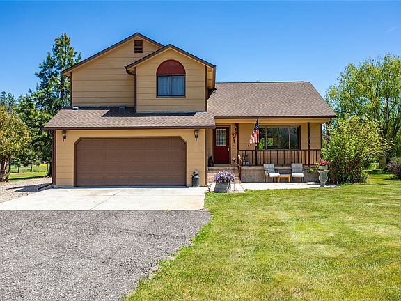 Situated on Leo Hansen Road, a tranquil low-traffic area just a short 20-minute drive from Missoula, this charming 3 bedroom, 2.5 bathroom home in Florence, Montana, offers serene country living at its finest. Built in 1995 on 4.5 meticulously maintained acres, this property boasts fenced and cross-fenced grounds, ideal for accommodating animals. Adjacent to a conservation easement ensuring uninterrupted panoramic views, the location is perfect for outdoor enthusiasts, with fishing and recreational activities nearby. The home itself exudes warmth and light, featuring a spacious living area and an inviting eat-in kitchen, while downstairs, an additional living room adds versatility. Upstairs, all three bedrooms, including the primary suite, offer comfort and privacy. Adding to the appeal is a generous shop complete with heating, power, and electricity, providing ample space for hobbies or storage.