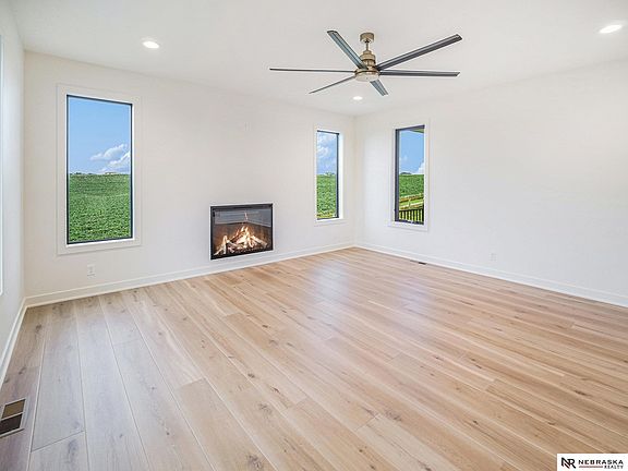The Walters Ridge Custom by 402 Customs is a striking 6-bedroom, 4-bath two-story home on a sprawling .9-acre lot just southwest of Hickman, NE. Blending elegance with everyday comfort, this home greets you with a dramatic two-story entry that sets the stage for its open, light-filled design. The serene primary suite offers expansive views of the surrounding landscape and a spa-like bath with a soaking tub? your private retreat. The gourmet kitchen features an eat-in bar, large walk-in pantry, and attached dinette that opens to a deck, creating an ideal space for hosting or casual meals. Downstairs, the spacious basement rec room extends to a rear patio, perfect for indoor-outdoor gatherings. With generous living spaces, thoughtful finishes, and sweeping views from nearly every angle, this custom build delivers style, function, and the quiet charm of country living just minutes from town.