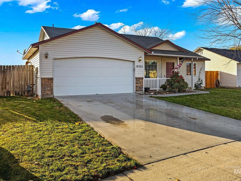 Welcome to this charming single-level home in the desirable Delaware Park neighborhood of Caldwell! Featuring 3 bedrooms, 2 baths, and nearly 1,200 sq ft of inviting living space, this 2004-built home offers the perfect blend of comfort and functionality. The open-concept floor plan flows seamlessly and the kitchen and dining area have a bright skylight and sliding glass door that fill the space with natural light. The split-bedroom layout provides privacy, with a spacious primary suite featuring dual closets and a private bath. Enjoy outdoor living in the fully fenced backyard with almost a third of an acre for entertaining, gardening, or RV parking. Plus no back neighbors for added privacy! Located on a quiet street just minutes from schools, shopping, dining, and easy freeway access, this home combines convenience and value in one fantastic package. Move-in ready and full of charm, don’t miss it!
