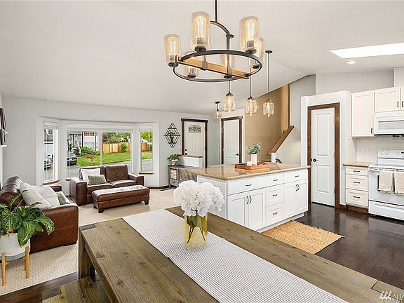 Well maintained North Bothell tri-level home on large corner lot. 1,422 SF, 3 bed / 2.5 bath with two large living spaces. Great open floor plan with an abundance of natural light, vaulted ceilings, oak hardwood floors, beautiful kitchen with granite counters and huge island - perfect for entertaining. All beds on upper floor with updated baths. Lower level living space features wet bar, gas fireplace and new shiplap wall. Close proximity to I-5, I-405, parks & award-winning Northshore schools.