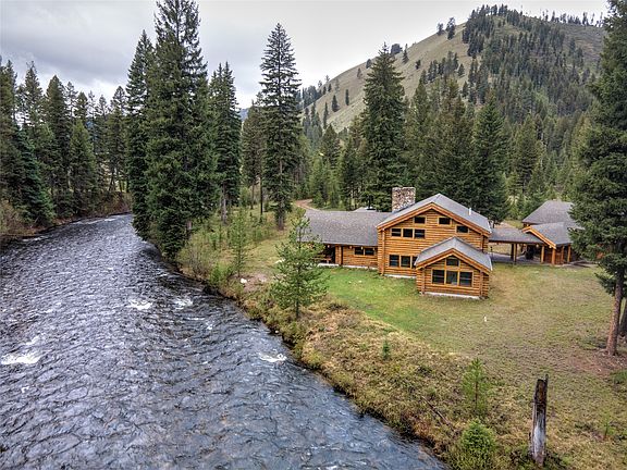Undoubtedly one of the most unique offerings on the market. The first time offered, discover a true Montana gem—a stunning 3,000-square-foot log cabin nestled along the pristine East Fork of the Bitterroot River, where the beauty of nature surrounds you at every turn. Bordering Forest Service land, this rare property offers direct access to endless outdoor adventures, ensuring unmatched privacy and breathtaking scenery. Over 750 feet of East Fork Bitterroot frontage and three property boundaries with the US Forest Service set the backdrop for this meticulously designed cabin. When you step inside, you will be welcomed with towering, vaulted ceilings in the great room and a two-sided rock fireplace. The sheer scale of this fireplace makes a dramatic impact, soaring upward to complement the vaulted ceilings and open-concept kitchen that make up the main floor. Situated just off the kitchen is the formal dining room. The dining room captures beautiful river views and offers ample light. This space lends itself to large gatherings on special occasions. The kitchen is framed by exposed timber beams and vaulted ceilings. This expansive space features rich wood cabinetry, tile countertops, and a generous island perfect for gathering. Natural light pours in through oversized windows, casting a golden glow across the wide-plank floors. Whether you're preparing a family feast or sipping coffee beside the crackling wood stove, this kitchen delivers the perfect balance of cozy charm and modern convenience. The great room is centered around the natural river rock fireplace. Handcrafted, this immense fireplace is similar to ones found in lodges throughout the West. The great room has both East and West facing windows that provide natural light throughout the day. On the main floor, you will find the primary suite with river views. The primary bath is situated just off of the suite and offers both a bath and a shower. The lower level is finished off with a laundry and mechanical room as well as the second guest bath. As we find ourselves walking upstairs, you can't help but notice that the stairway is one large, handcrafted log. The second floor has the same open air, vaulted ceilings as the great room. This space is nearly 1,000 square feet and offers another heat source from a fireplace that shares the same rock chimney. For that added privacy, there is a bedroom located on the second floor. Outside, there is a large two-car garage that is attached to the home via a breezeway. The garage has added space for recreational storage with a loft and a back storage room. This property offers endless recreational opportunities, seclusion, and all located on a short private lane off the well-maintained paved road. Don't miss the opportunity to purchase a legacy river property.