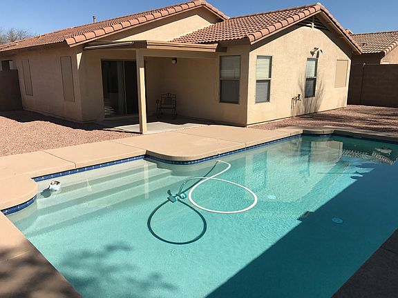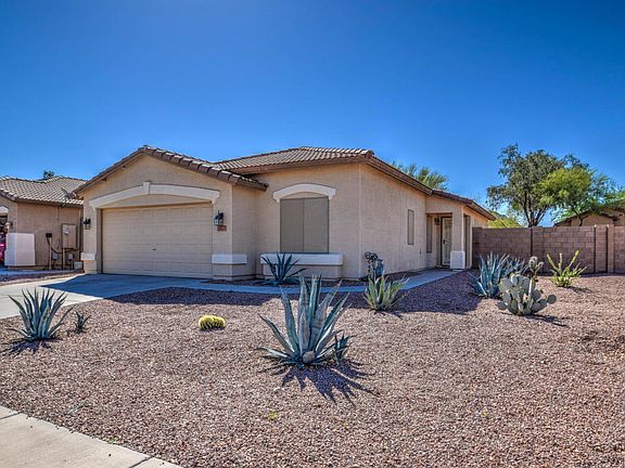 This gorgeous home is located in beautiful San Tan Heights & offers 4 bedrooms & 2 bathrooms. Enter the home through the security door into the spacious family room. The open floor plan provides ample space & an open feel. The large kitchen features stainless steel appliances, custom back splash, granite counter tops, staggered ceramic tile, recessed lighting & a rolling island. The grand master suite offers a double vanity w/ granite counter tops, garden tub, glass shower, walk-in closet, linen cabinet & pool views. The split floor plan also provides 3 more bedrooms & a full hall bath complete w/ shower/tub combination. The backyard features a large stunning pool w/ pebble tech. The block wall has been extended along the back of the property for further privacy. Other upgrades the home includes are ceiling fans throughout, faux wood blinds, custom paint tones, sunscreens & blown in cellulose insulation.