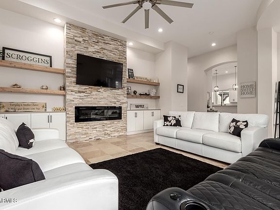 Exquisite Custom Estate in Pasqualetti Mountain Ranch. Nestled on over an acre with captivating mountain views, this 4-bedroom, 3-bath custom home blends timeless elegance with modern design. The interior features travertine flooring throughout the main living spaces and an open layout ideal for both relaxation and entertaining. The gourmet kitchen is appointed with sleek quartz countertops, a walk-in pantry, and a welcoming breakfast bar. The primary suite serves as a private retreat, showcasing a spa-inspired bath with a garden tub, separate shower, dual vanities, and a spacious walk-in closet. Completing this exceptional home is a 3-car garage and refined finishes that define luxury desert living.
